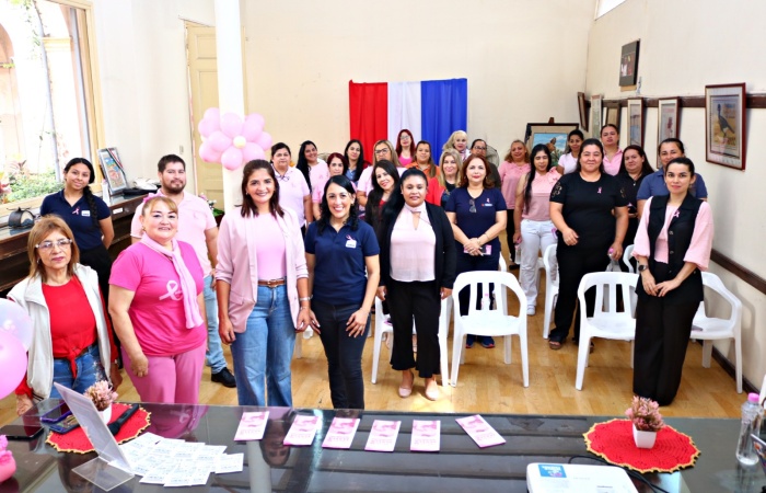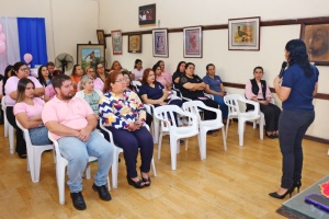 La abogada Fátima Rojas, directora de la Dirección de Recursos Humanos de la Dirección Nacional de Correos del Paraguay (Dinacopa), presidió la charla sobre la detección temprana del cáncer de mama.