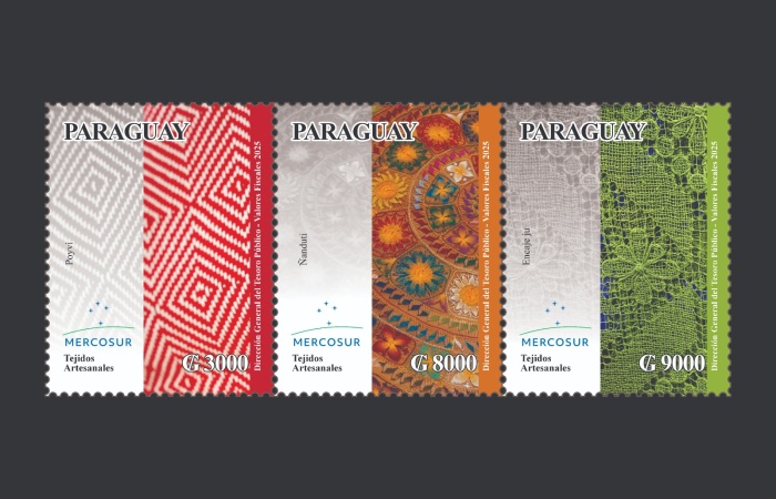 La Dirección Nacional de Correos del Paraguay (Dinacopa), a través de su Asesoría Filatélica, pone en circulación, desde este lunes 15 diciembre, la última serie postal del 2025 denominada Mercosur-Tejidos Artesanales que está integrada por 3 estampillas.